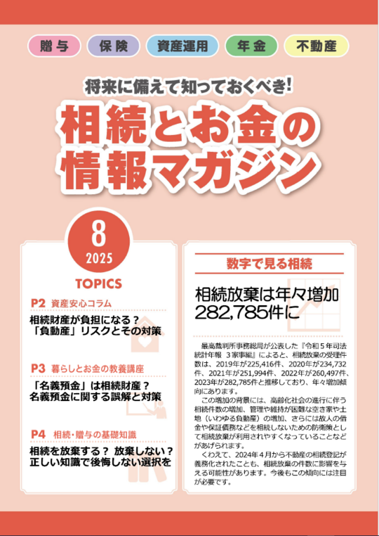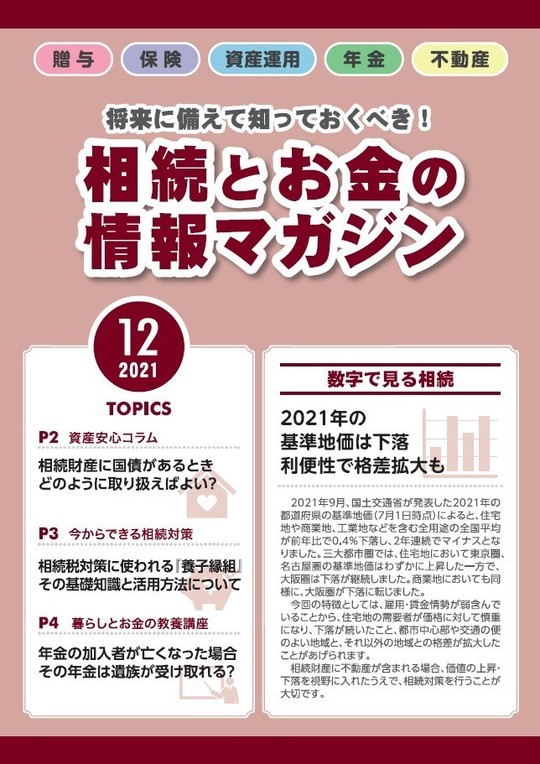 「相続」を正しく理解するには「お金」の知識が必要で、「贈与」「保険」「資産運用」「年金」「不動産」に関する記事も多く掲載されています。